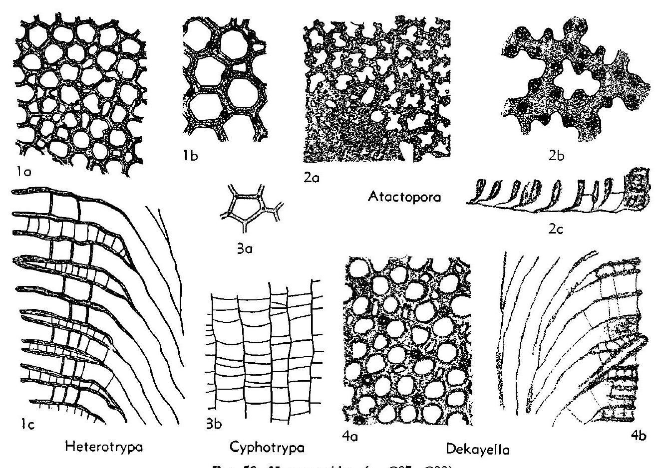 Fig. 59, 3. *C. acervulosa (Uld.), Trenton., Iowa, 3a, b, secs., x25, x20 (223)