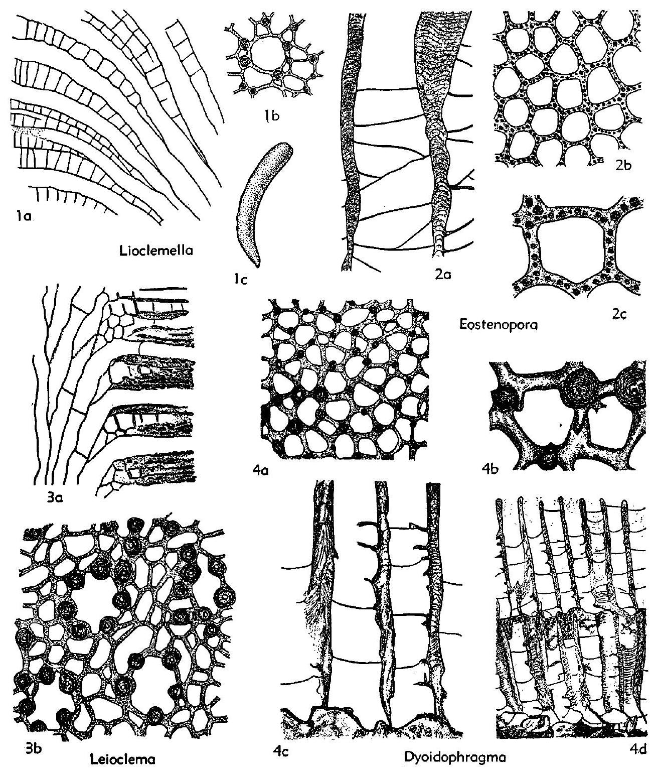 Fig. 67, 3. *L. punctata (Hall), Miss. (Warsaw), Iowa, 3a, b, secs., x20, x50 (223)